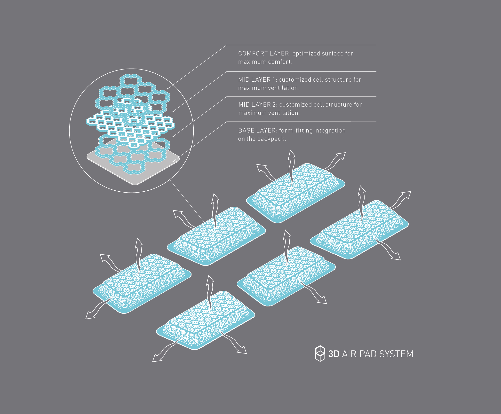 Systematic further development of our proven AIR PAD SYSTEM using state-of-the-art 3D manufacturing technology means: