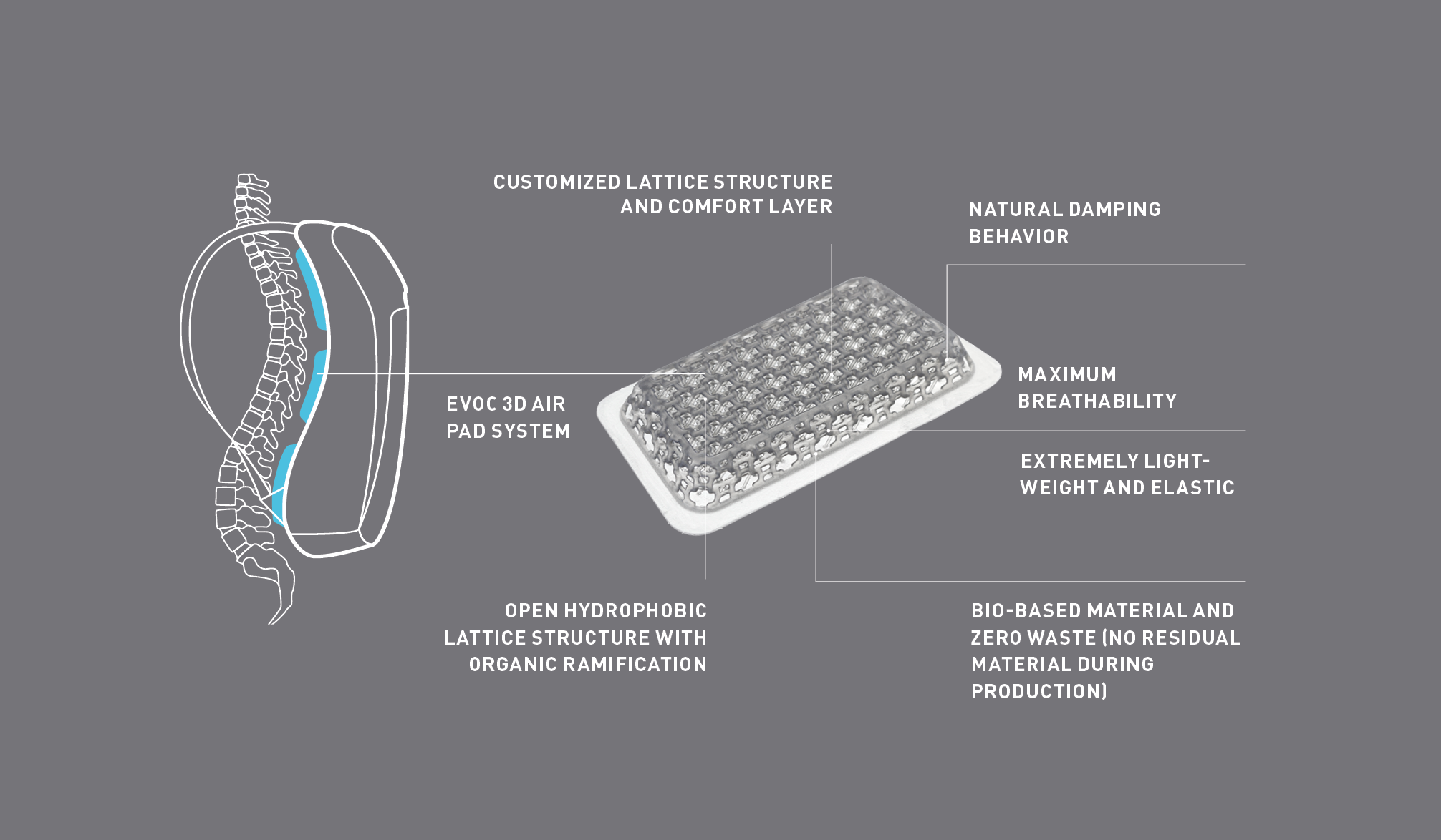 Why 3D? 3D manufacturing (additive manufacturing) has enabled us to improve the properties of back systems from scratch. We are probably looking several years ahead in terms of exploiting the full potential of these new technologies, but we are already in a position to make great strides when it comes optimisation of the following aspects: